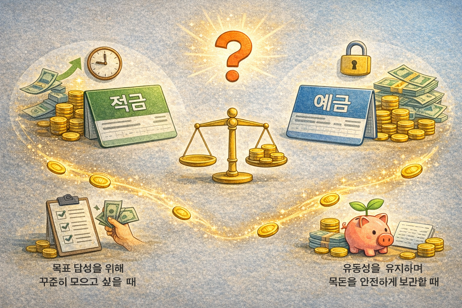 재테크의 핵심은 복잡한 기술이 아니라, 상황에 맞는 선택입니다. 적금과 예금도 마찬가지입니다. 목적을 먼저 정하고, 그에 맞는 상품을 고르세요. 그러면 숫자에 흔들리지 않는 기준이 생길 것입니다.